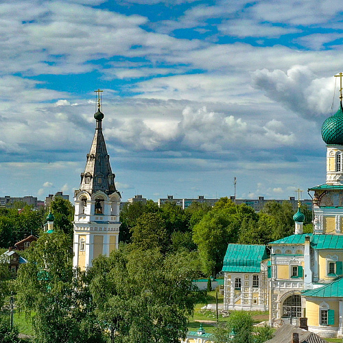 Один из красивейших городов Верхневольжья, Тутаев, раскинулся «на семи холмах, семи оврагах и семи чистых ключах». Волга делит город на две части: левобережную Романовскую и правобережную Борисоглебскую, и памятники, расположенные по обоим ее берегам, следуют один за другим.