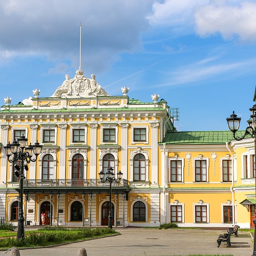К началу XIV в. относится появление Тверского кремля. Он просуществовал до второй половины 18-го столетия. К этому времени постройки крепости обветшали, а пожар 1763 г. окончательно уничтожил остатки деревянных сооружений. Примерно в этом месте сейчас стоит Путевой дворец, построенный для Екатерины II. Во дворце, служившем для остановок царей на пути между Петербургом и Москвой.