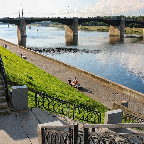 Живописны набережные и мосты Твери, особенно ажурный Старый мост (1900 г.). Рядом с ним, на левом волжском берегу, — памятник тверскому купцу Афанасию Никитину, путешественнику, проложившему в XV веке путь в Индию. Противоположный же берег Волги украшает памятник А.С.Пушкину, жизнь которого тесно связана с тверской землёй.