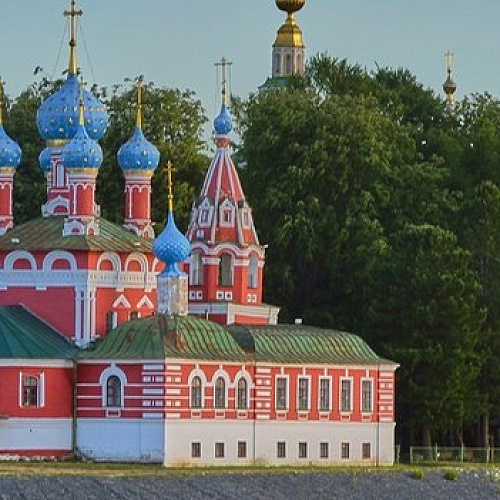 С борта теплохода открывается изумительная панорама Угличского кремля: знаменитая церковь Дмитрия «на Крови», величественный пятиглавый Спасо-Преображенский собор с колокольней.