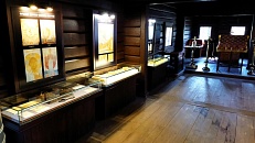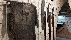 Экспозиция «Крестьянский быт Лодейнопольского уезда в конце ХIХ – начале ХХ в.». Представлены орудия труда и предметы быта крестьян: соха, льномялка, ткацкий станок, коса, две прялки, жёрнов, крестьянская одежда: две женские юбки и балахон, льняные полотенца, оятская керамика, изделия из бересты, бондарные изделия, образцы самодельной крестьянской обуви, инструменты сапожника, приспособление для изготовления валенок, рисунок С.Н.Зенкова «Середняк».