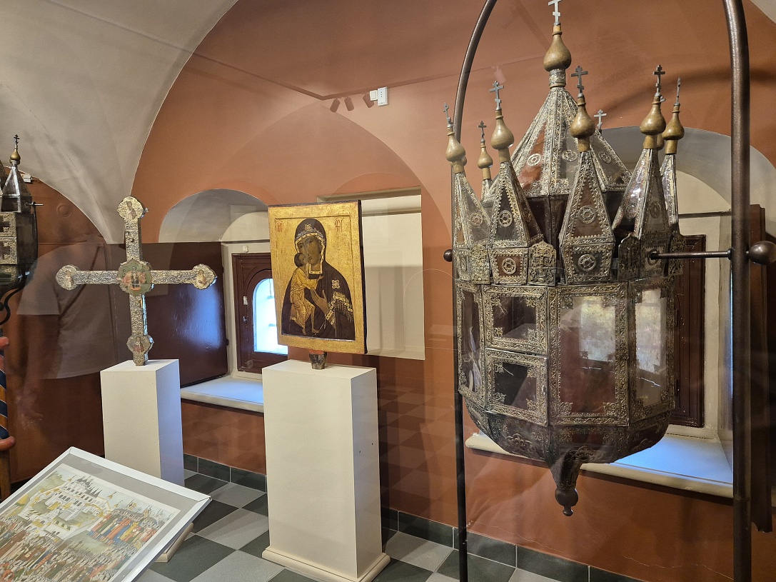 Пожалуйста, помните, что для посещения православных храмов необходима соответствующая одежда, закрывающая ноги и плечи. А также платки или головные уборы для женщин.