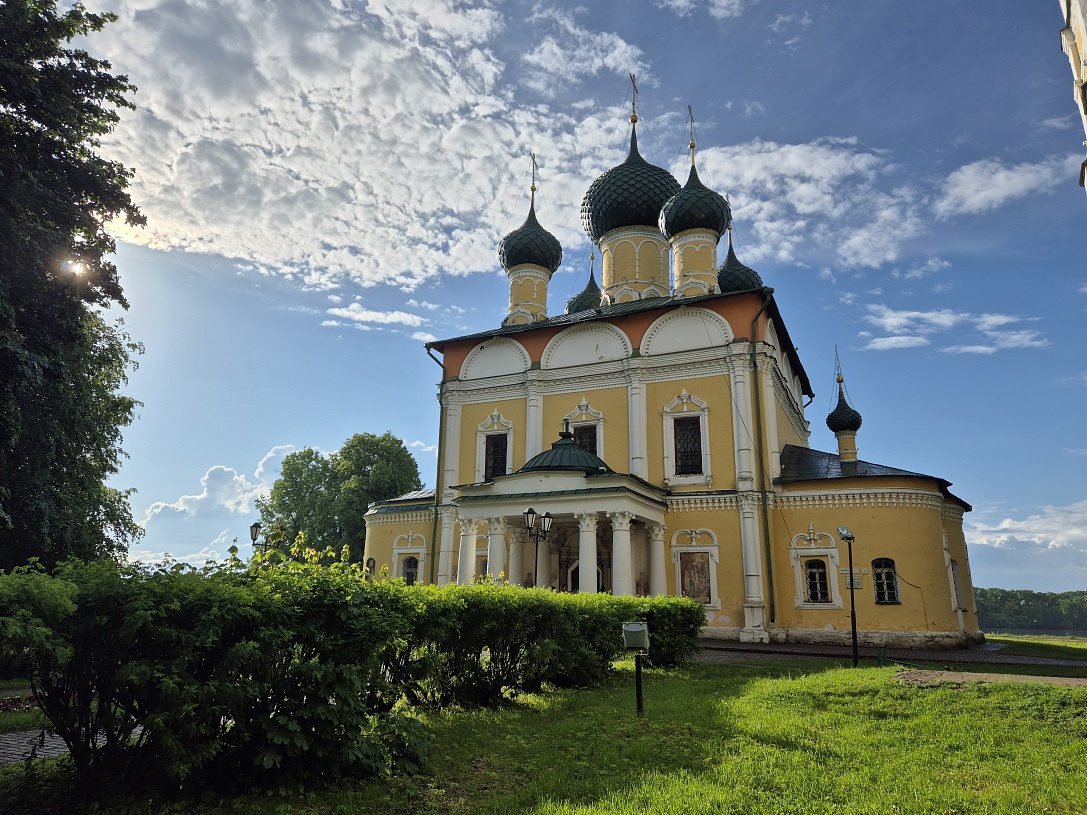 Угличский кремль — историко-архитектурный комплекс в центре города, который находится на живописном берегу Волги, между впадающими в нее речкой Шелковкой и Каменным ручьем. Здесь можно увидеть множество уникальных достопримечательностей, в числе которых знаменитая церковь Димитрия на Крови, воздвигнутая в 1692 г., а также Спасо-Преображенский собор — главный кафедральный собор города.