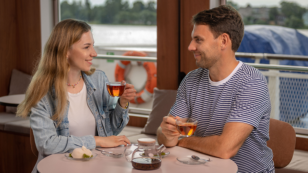 Бар «Панорама» находится в носовой части шлюпочной палубы. Здесь вас ждёт теплый прием, расслабляющая обстановка и удивительные панорамы, которые открываются только с воды во время речного круиза.