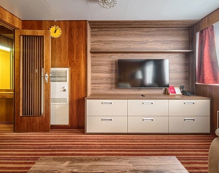 Вас ждут комфортабельные каюты, оснащённые санузлом с душевой, кондиционером, а также телевизором, холодильником и феном (в каютах класса «Люкс»). Помимо обширного каютного фонда, теплоход «Юрий Андропов» предлагает большое количество уютных мест для отдыха. В атмосферных барах и гостеприимных ресторанах на теплоходе вас ждёт тёплый приём, расслабляющая обстановка и потрясающие панорамные виды.