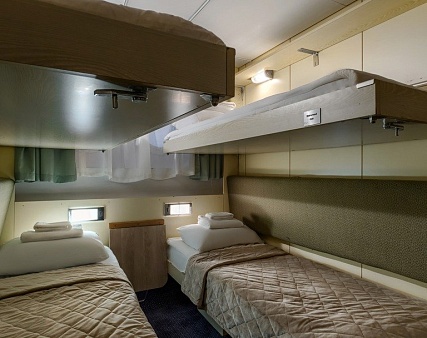 Возможна продажа каюты в двухместном одноярусном размещении (по стоимости 2-местной одноярусной каюты) и в трёхместном двухъярусном размещении (по стоимости 3-местной двухъярусной каюты).