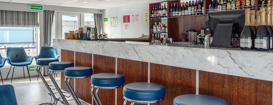- Ужин – заказная система питания (выбор блюд со 2-го дня круиза). Включенные напитки (без ограничения): вода, чай, кофе. Кисломолочный напиток (1 стакан, 200 мл.) по запросу гостя. На выбор: вино красное / белое / игристое (1 бокал, 125 мл.) / водка (1 рюмка, 50 мл.) / пиво (1 бокал, 300 мл.) / домашний морс (1 бокал, 200 мл.). Фиксированная рассадка;