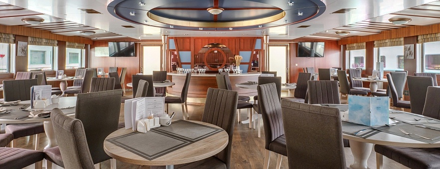 При разработке меню для ресторанов на борту наши шеф-повара вдохновлялись кулинарными традициями побережья Чёрного моря, Волги, Дона, озёрного края Северо-Запада России. Мы используем свежие локальные продукты, характерные для этих регионов, и предлагаем нашим гостям попробовать блюда, которые отражают гастрономические особенности народов нашей страны. Благодаря концепции «Родные берега», вы получите более полное представление о том месте, в котором находитесь, откроете новую палитру вкусовых ощущений и обретёте дружную компанию единомышленников.