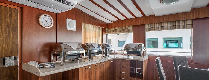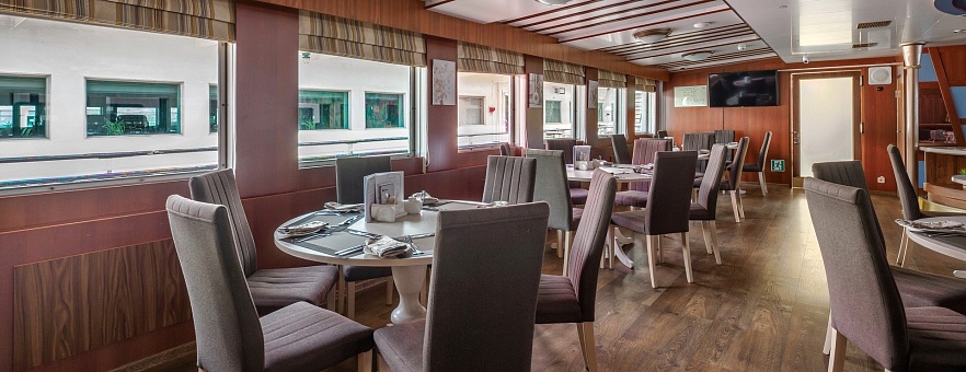 — обслуживание в каюте*: заказ блюд и напитков по действующему прайс-листу из Бара, обслуживание бесплатно; заказ блюд и напитков по основному меню ресторана, обслуживание платно.
