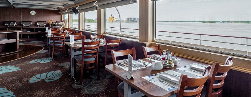 При разработке меню для ресторанов на борту наши шеф-повара вдохновлялись кулинарными традициями побережья Чёрного моря, Волги, Дона, озёрного края Северо-Запада России. Мы используем свежие локальные продукты, характерные для этих регионов, и предлагаем нашим гостям попробовать блюда, которые отражают гастрономические особенности народов нашей страны. Благодаря концепции «Родные берега», вы получите более полное представление о том месте, в котором находитесь, откроете новую палитру вкусовых ощущений и обретёте дружную компанию единомышленников.