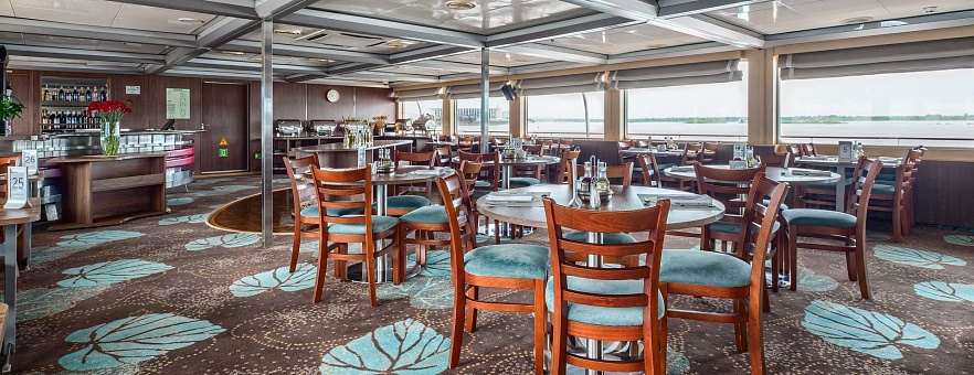 При разработке меню для ресторанов на борту наши шеф-повара вдохновлялись кулинарными традициями побережья Чёрного моря, Волги, Дона, озёрного края Северо-Запада России. Мы используем свежие локальные продукты, характерные для этих регионов, и предлагаем нашим гостям попробовать блюда, которые отражают гастрономические особенности народов нашей страны. Благодаря концепции «Родные берега», вы получите более полное представление о том месте, в котором находитесь, откроете новую палитру вкусовых ощущений и обретёте дружную компанию единомышленников.