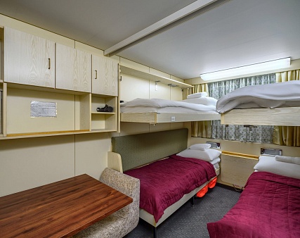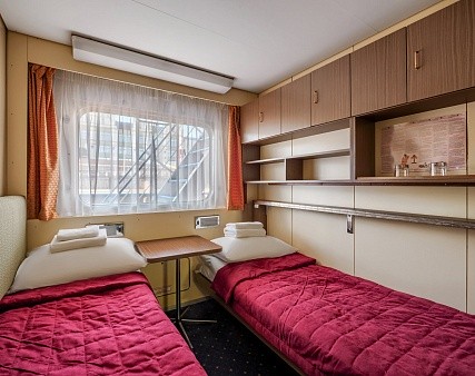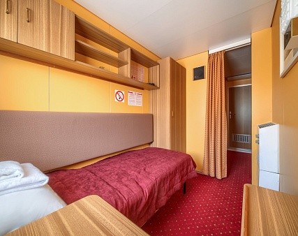 Возможна продажа каюты в двухместном одноярусном размещении (по стоимости 2-местной одноярусной каюты) и в трёхместном двухъярусном размещении (по стоимости 3-местной двухъярусной каюты).