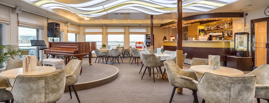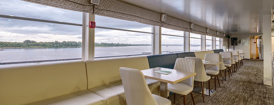 Вас ждут просторные и комфортабельные каюты, оснащённые санузлом с душевой, кондиционером, холодильником, телевизором и феном. Помимо обширного каютного фонда, теплоход «Санкт-Петербург» предлагает большое количество уютных мест для отдыха. В атмосферных барах и гостеприимных ресторанах на теплоходе вас ждёт тёплый приём, расслабляющая обстановка и потрясающие панорамные виды.
