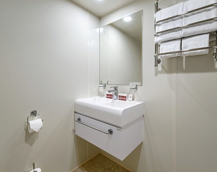 В каюте: двуспальная кровать, холодильник, минибар, сейф, телевизор, шкаф для одежды, радио, обзорное окно, душ, санузел, кондиционер, фен, электророзетка на 220V.