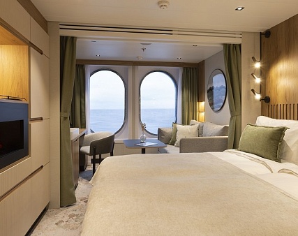— Камерность и эксклюзивность. Всего 152 гостя могут разместиться в 76 просторных каютах и люксах, что создает атмосферу приватного клуба. Вас обслуживает экипаж из 120 человек, включая экспедиционную команду гидов, ученых и лекторов. Соотношение почти 1:1 гарантирует персонализированное внимание и сервис высочайшего уровня.