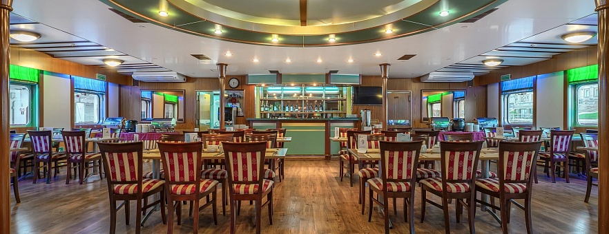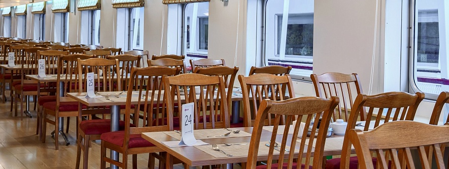 Расширенный тариф. Фиксированная рассадка в ресторане «Нева» на шлюпочной палубе, количество мест ограничено.
