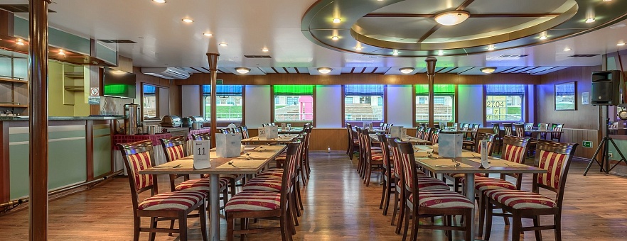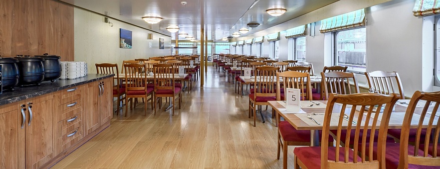 - Завтрак: шведский стол или заказная система с элементами шведского стола. Включены напитки без ограничения: вода, сок, чай, кофе. В рейсах до 4-х дней при ранней высадке в день прибытия завтрак континентальный;