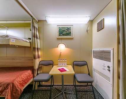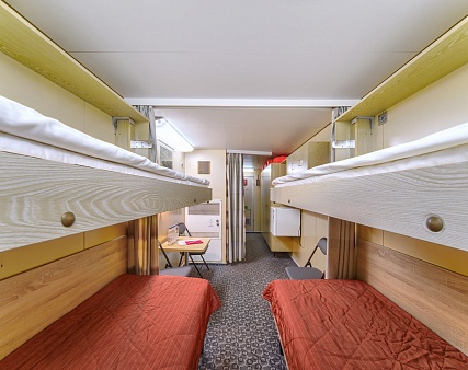 Возможна продажа каюты в трех- и двухместном размещении по стоимости трехместной двухъярусной и двухместной одноярусной каюты.