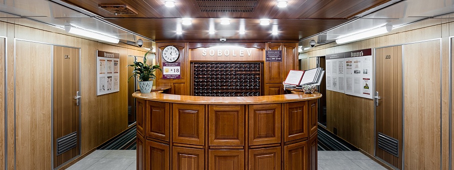 Комфортабельный четырёхпалубный теплоход «Леонид Соболев» построен по проекту 302 в Германии, оснащен современным навигационным оборудованием.