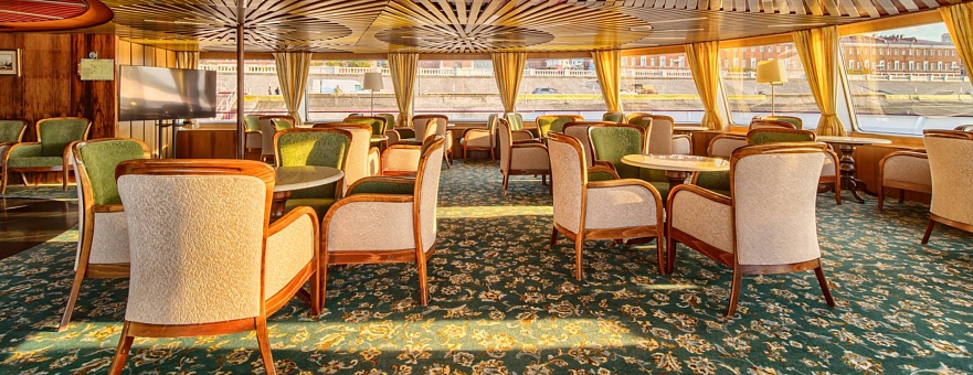 На борту наших теплоходов мы создали все условия для комфортного отдыха и приятного путешествия. На всех теплоходах есть медицинский кабинет, где вы можете получить квалифицированную помощь, стойка регистрации, куда вы можете обратиться по любым возникающим вопросам, сувенирный киоск, где вы можете приобрести памятные сувениры. Гладильная комната поможет привести в порядок свою одежду перед выходом на экскурсию.
